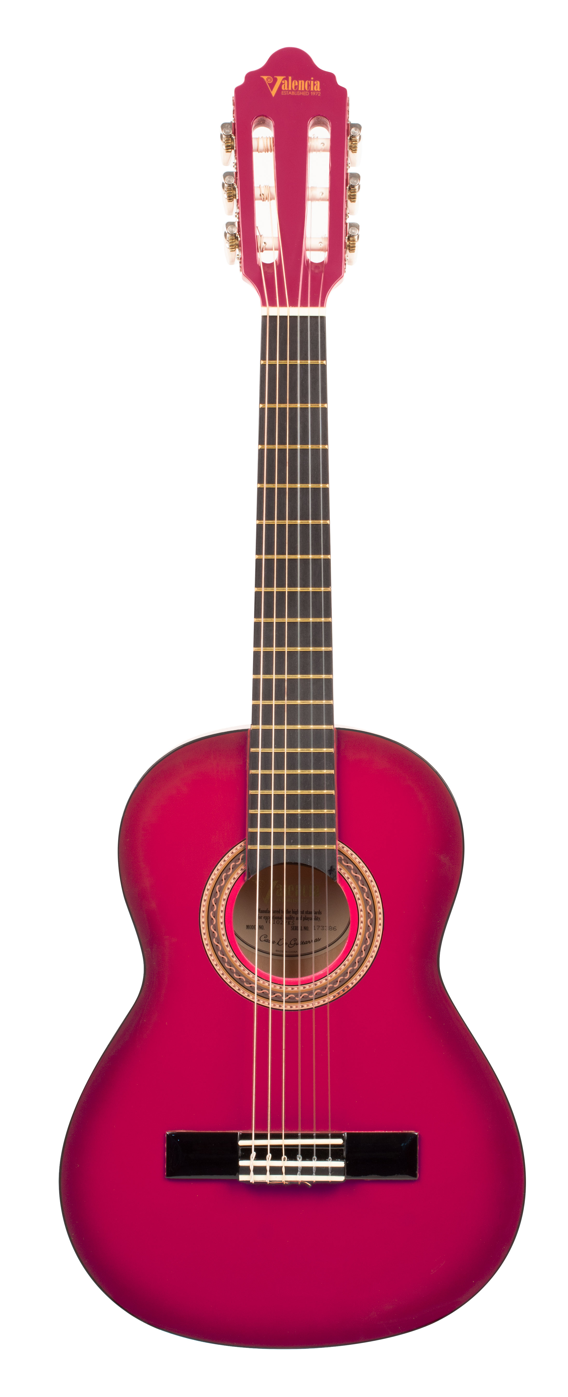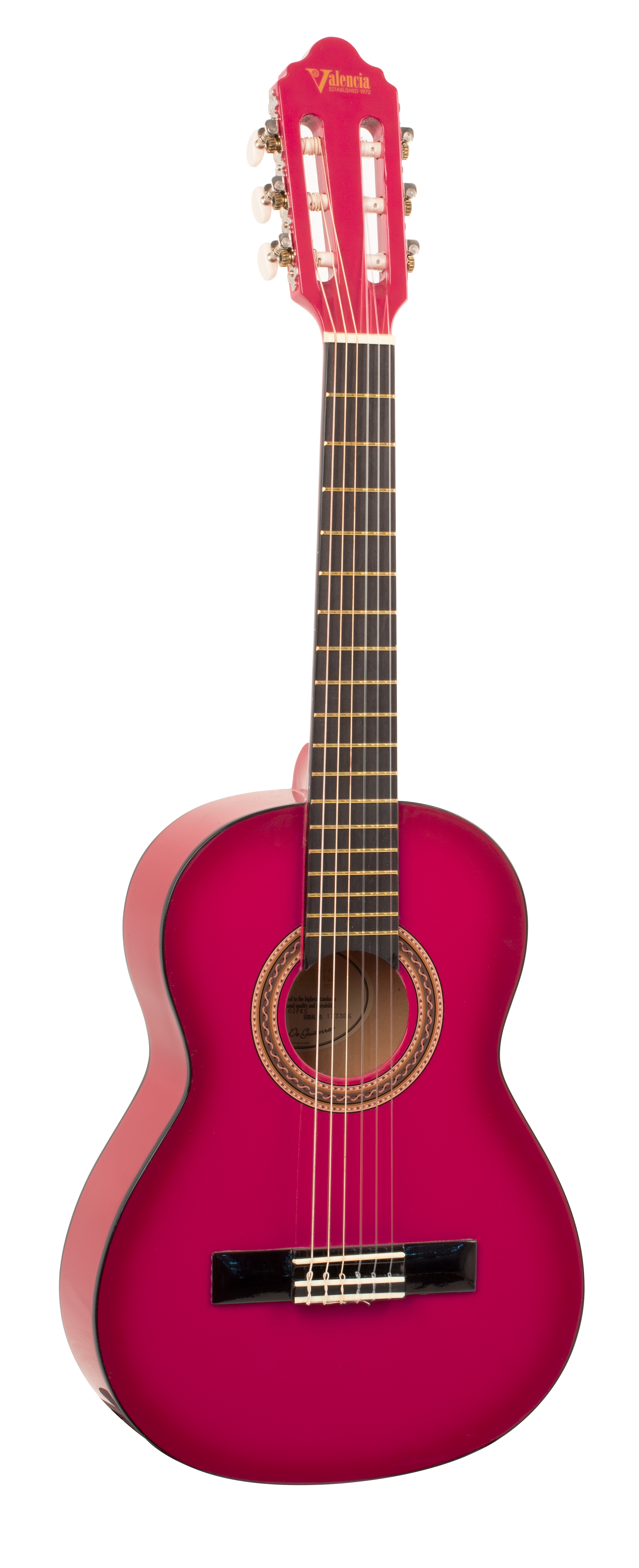 1/2 size Valencia classical guitar. Pink finish.
